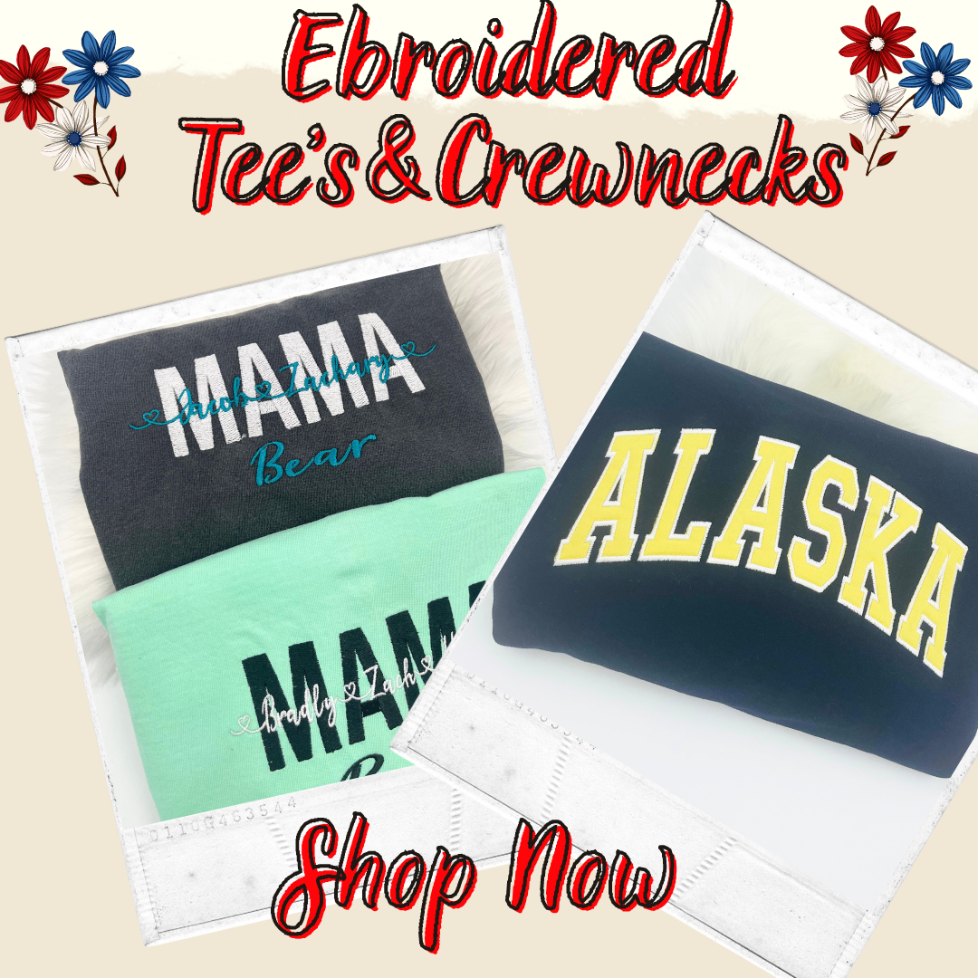 • Embroidered Tee's & Crewnecks, Long Sleeve, & Hoodies