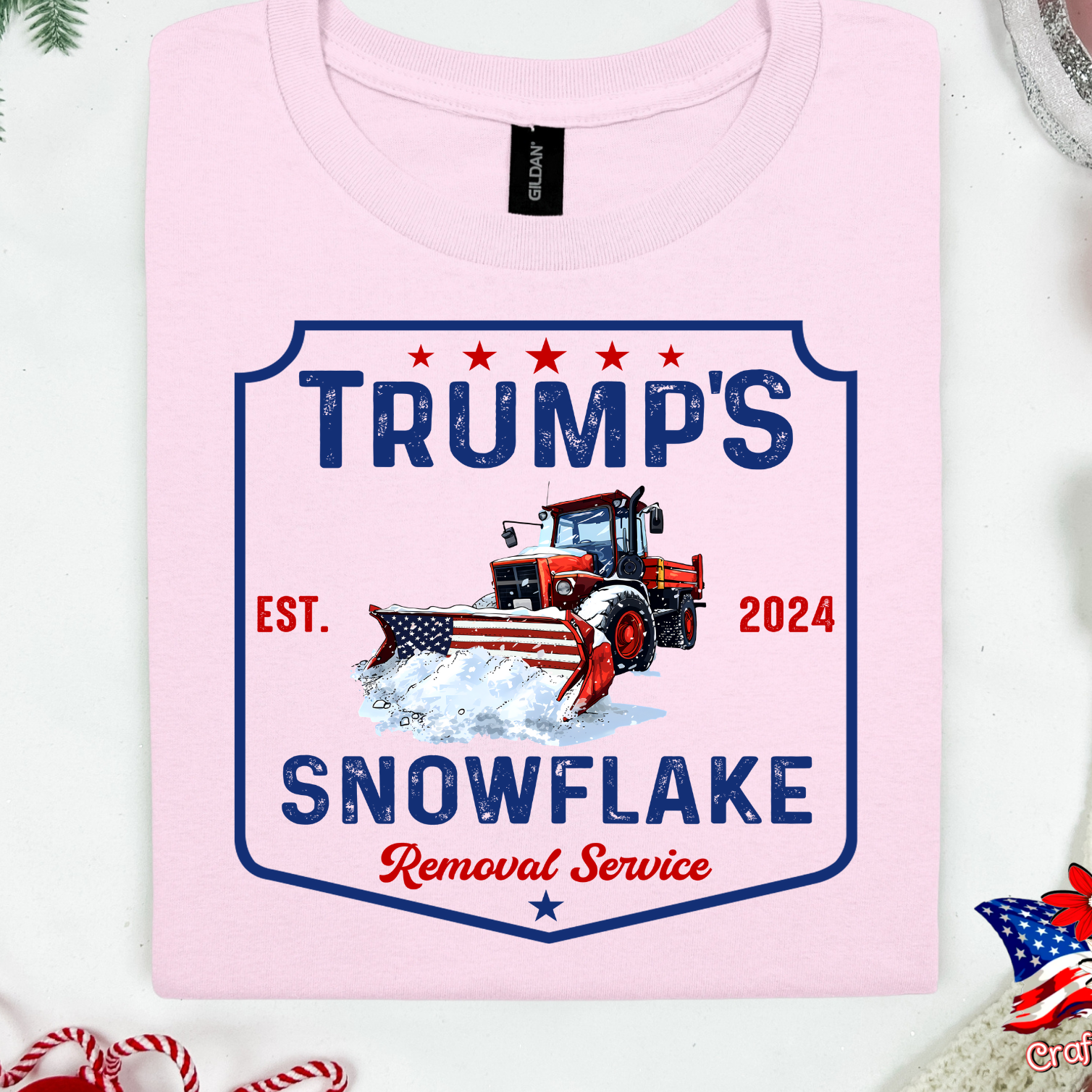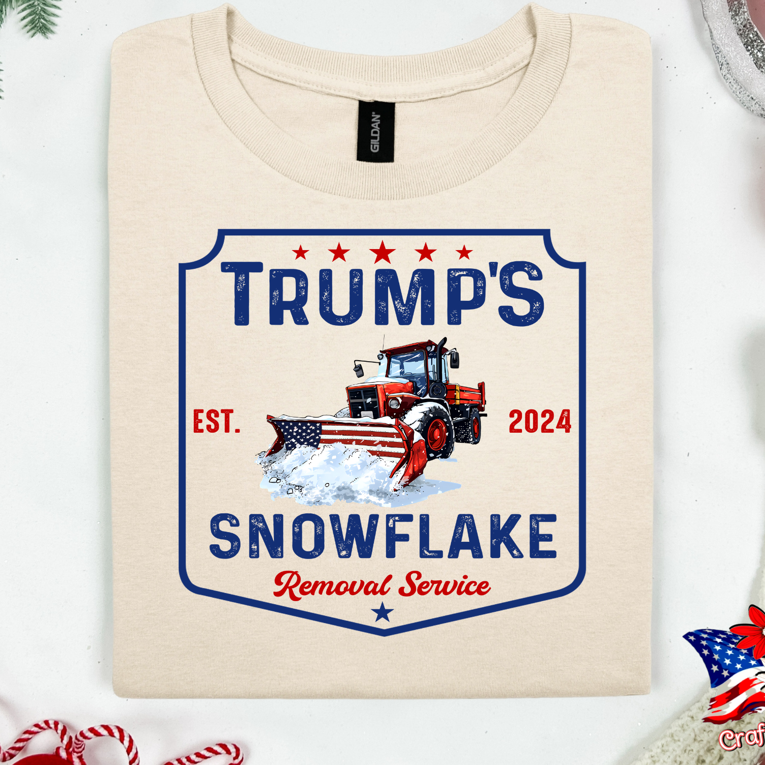 Pro-Trump "Snowflake Removal Service"2024 Crew Neck Patriotic Humor Tee